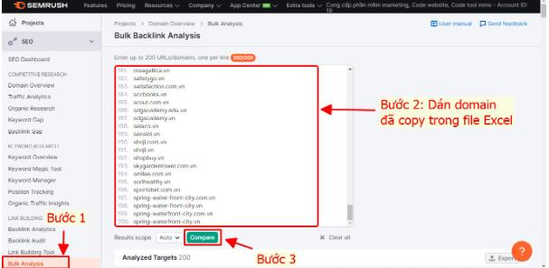 Bạn chỉ việc đưa URL website cạnh tranh với bạn vào mục “Bulk Backlinks” và làm theo những bước tôi giới thiệu ở phần trước để sàng lọc liên kết. Kết quả sẽ là một loạt các backlink chất lượng của website họ.