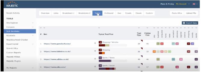 Trên website Majestic bạn cần có tài khoản mới có thể xem được chỉ số Topic trust flow.
