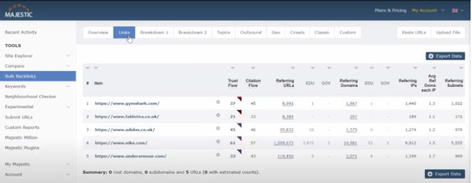 Ngoài phân tích đối thủ cạnh tranh, bạn có thể sử dụng majestic để xác định những liên kết độc hại như